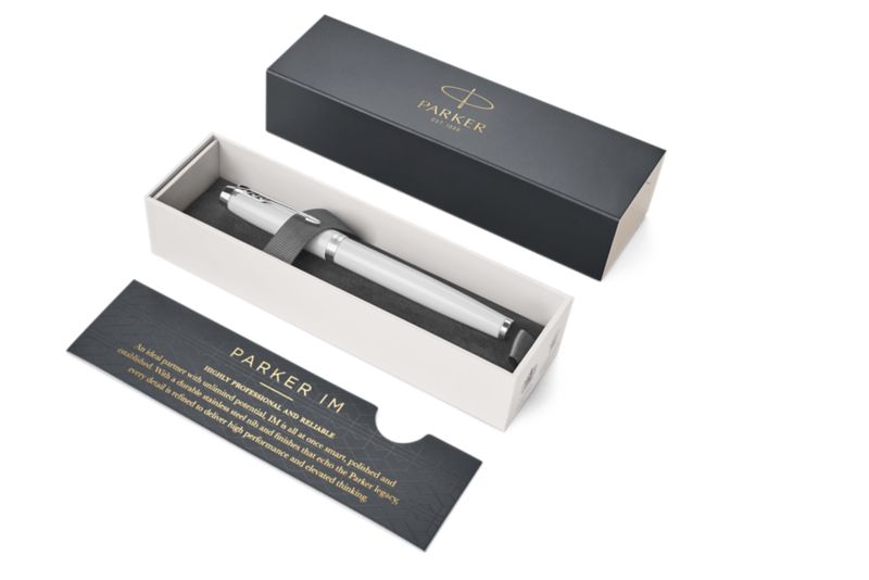 Ручка роллер Parker IM Metal White CT от официального дилера Parker в Твери. Вы можете дополнительно заказать гравировку, которая подчеркнет Вашу оригинальность и придаст памятность статусному подарку. Все ручки Паркер поставляются в фирменном футляре.
